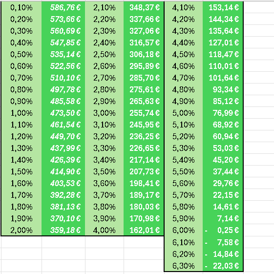 Come si nota facilmente, più alto è il tasso di sconto, minore diventa il potenziale guadagno reale, fino a trasformarsi in una perdita.