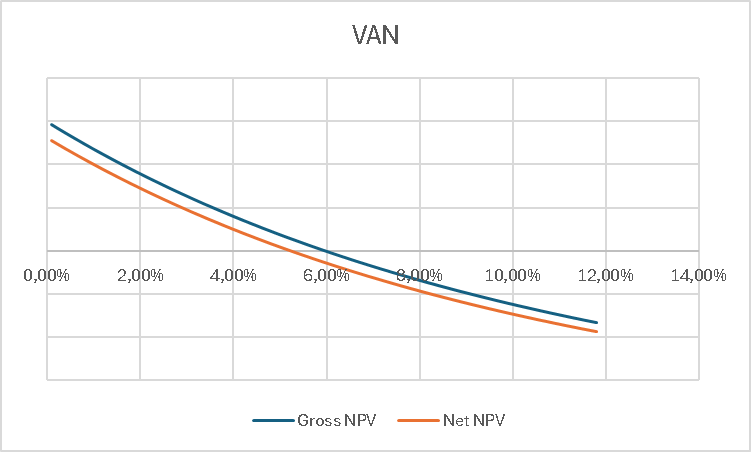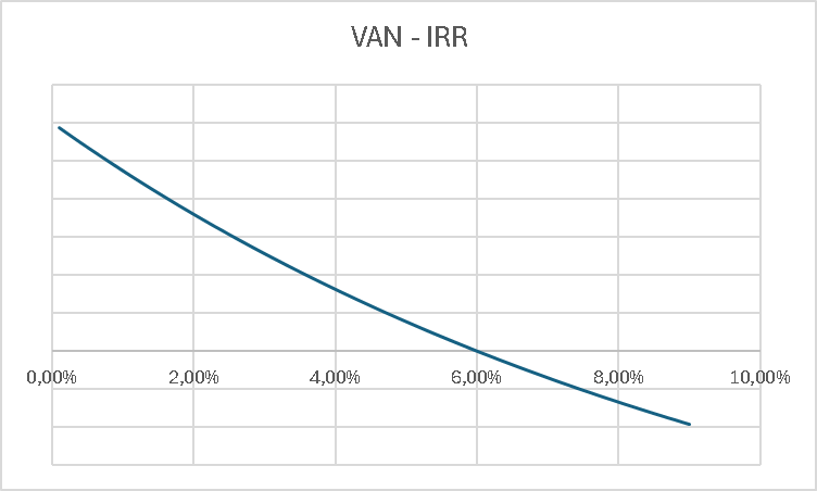 Questo grafico riporta il Valore Attuale Netto, e il punto in cui attraversa l’asse orizzontale è il suo IRR.